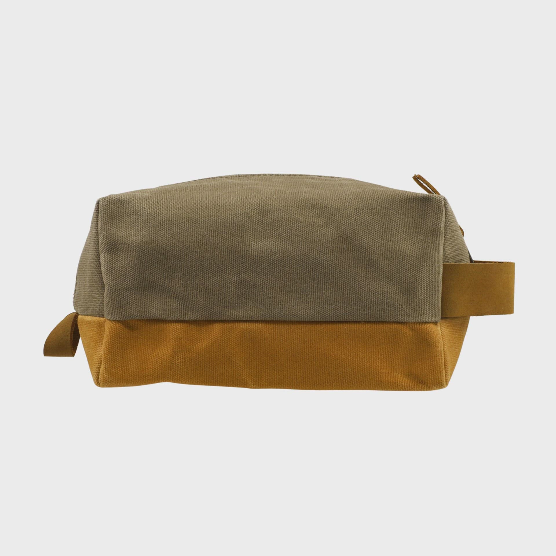 The bold two-tone exterior features a large leather handle on one end and a small finger-loop on the other, making use of our famously-smooth zipper a cinch. Hang your Dopp from either loop. Inside find a small zippered-pocket for your field mirror, emergency cash or other stash. The waxed-canvas interior makes the inevitable spill easy to clean; its contrasting color makes your stuff easy to see. Bag dimensions are 9.5" x 5" x 5"